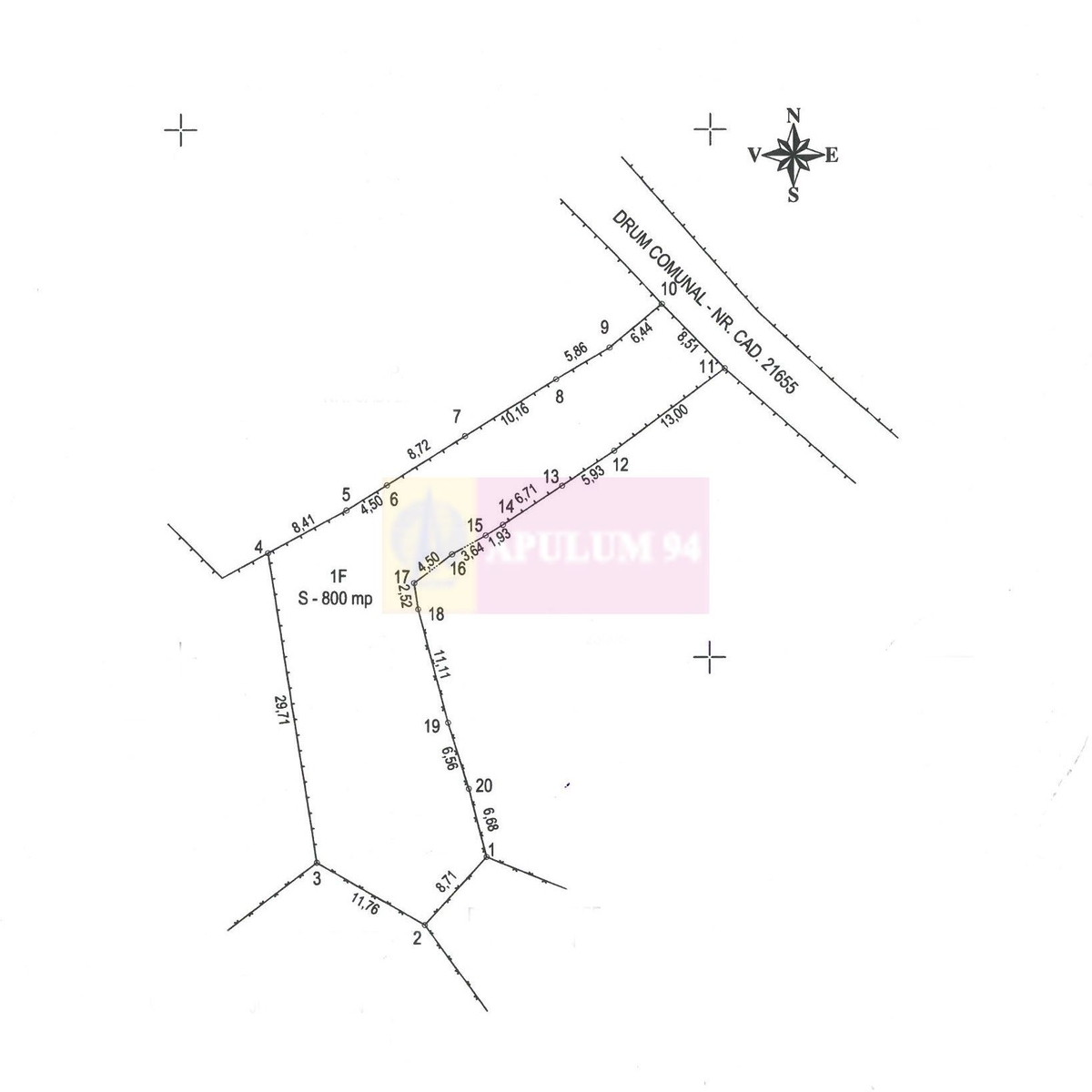 Terenul este amplasat intre alte proprietati construite, fiind potrivit pentru dezvoltare rezidentiala sau casa de vacanta.