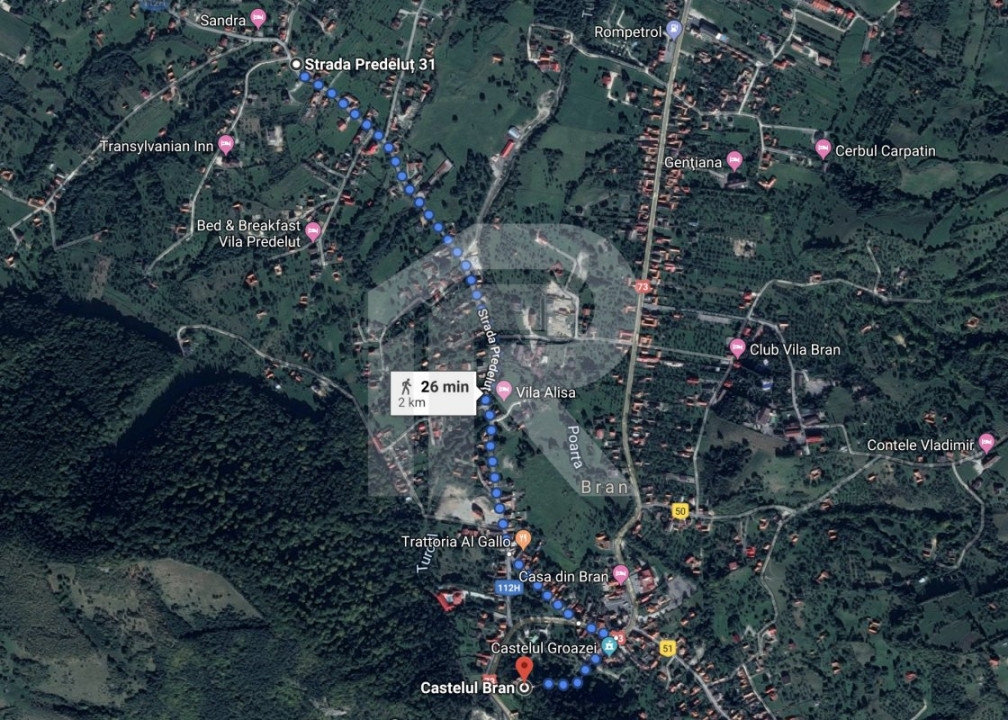 Îti propun spre vânzare un teren excelent pentru investitie, aflat în Comuna Bran, sat Predelut, una dintre cele mai apreciate zone turistice din România. Proprietatea este amplasata într-un cadru natural superb, la doar 2 km de Castelul Bran, foarte aproape de DN73, având deschidere la drumul judetean DJ112H.