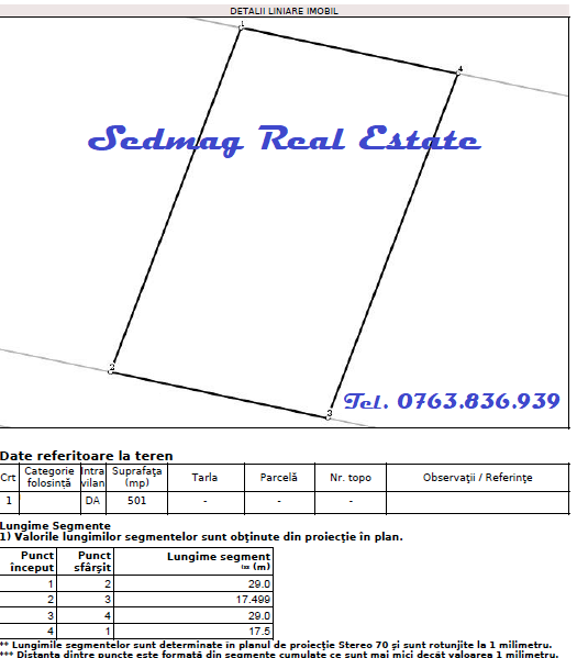 Sedmag Real Estate va propune spre vanzare, teren in suprafata de 501mp, deschidere 17,5m, toate utilitatile la limita de proprietate, situat in zona M3(POT 60%,CUT 2,5) cadastru, intabulare, pret 320Euro/mp