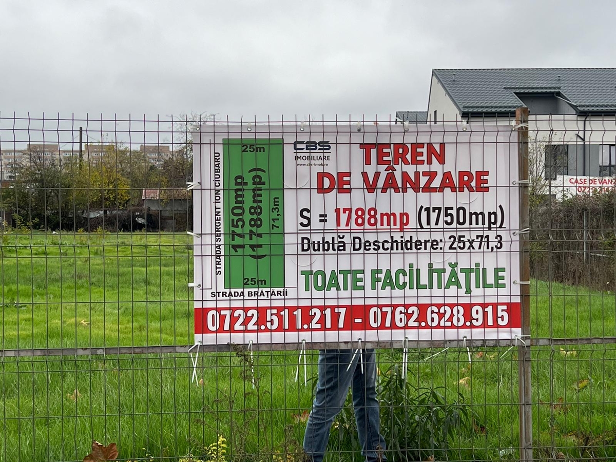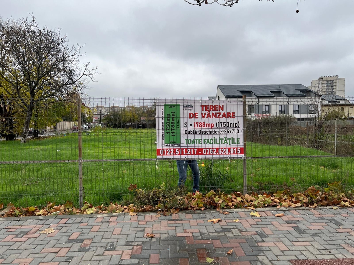 unicat, teren 1750 mp, pe colt, dubla deschidere (25 m - Bratarii si 71,5 m -Cuibaru Ion), v-a-v IRAM Residence. Teren imprejmuit, toate facilitatile. Urbanism L1c, POT=60%, P+ET+M9 (R2), cu posibilitate de etaj in plus, fiind colt de strada,