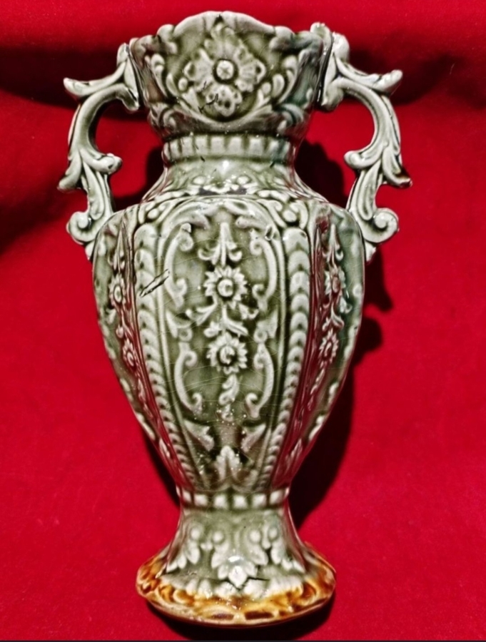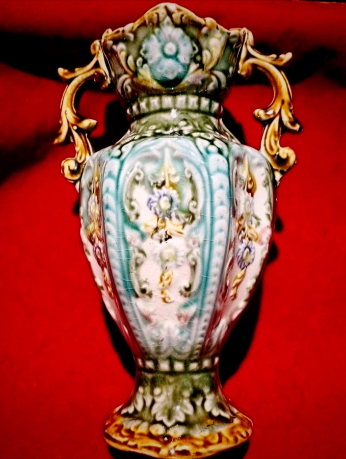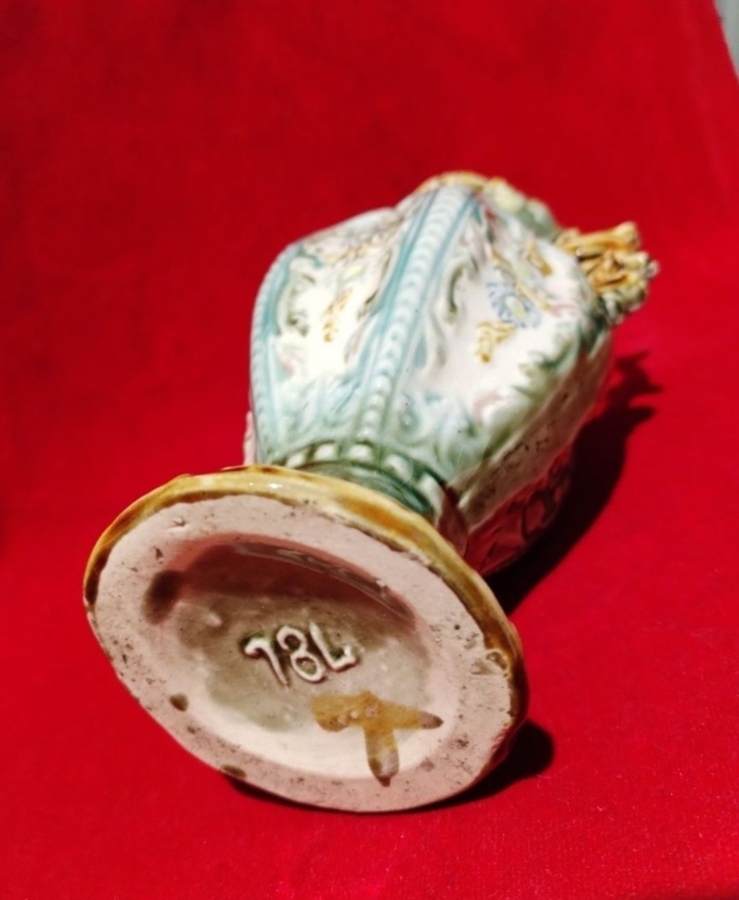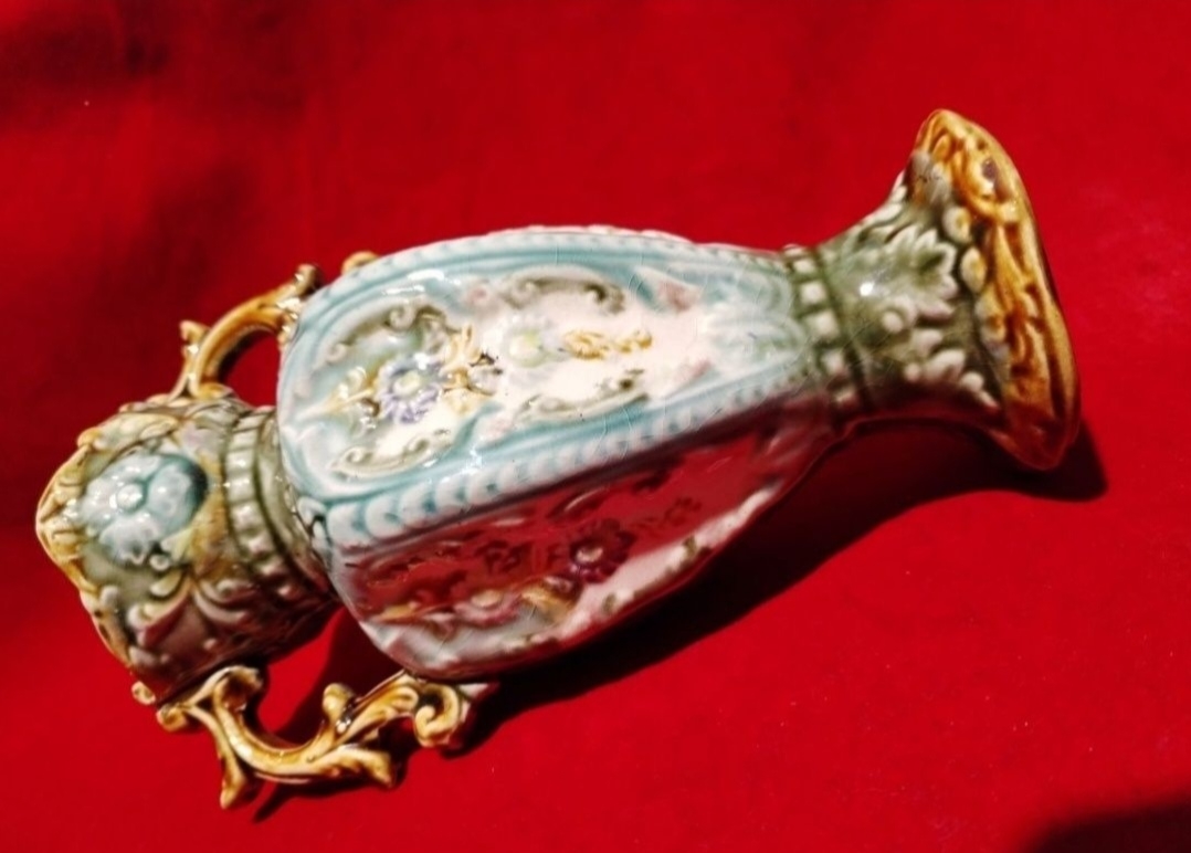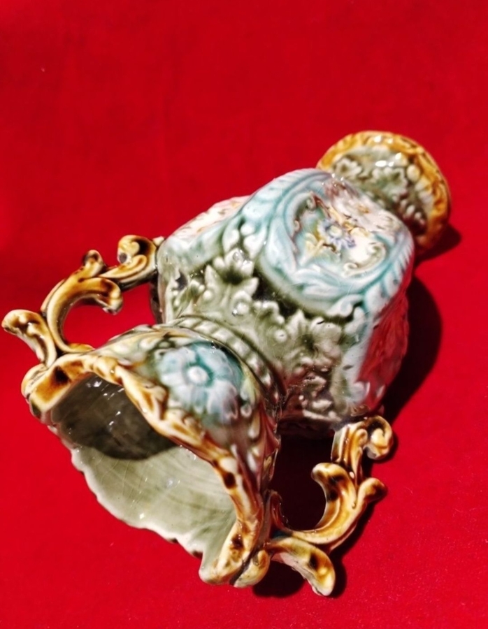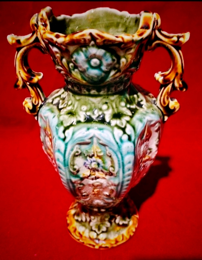 Vaza Alhambrian victoriana, cu majolica decorativa specifica anilor 1800.