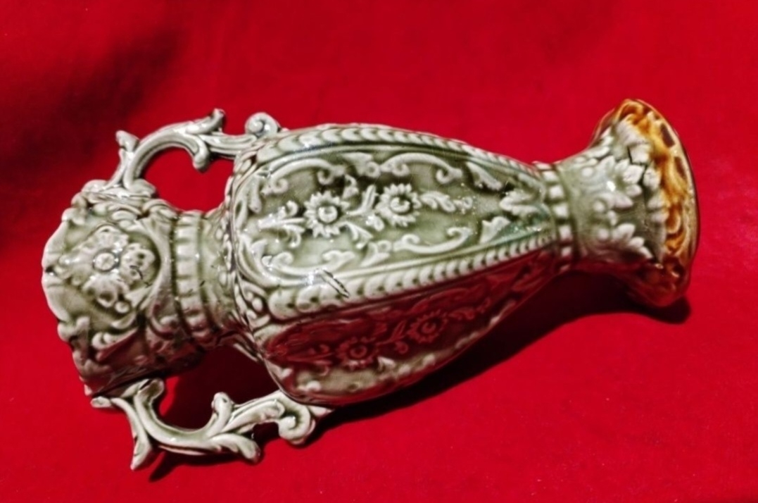 Este o vaza majolica cu doua fete distincte, la o simpla rotire cu 180° in jurul axei sale.