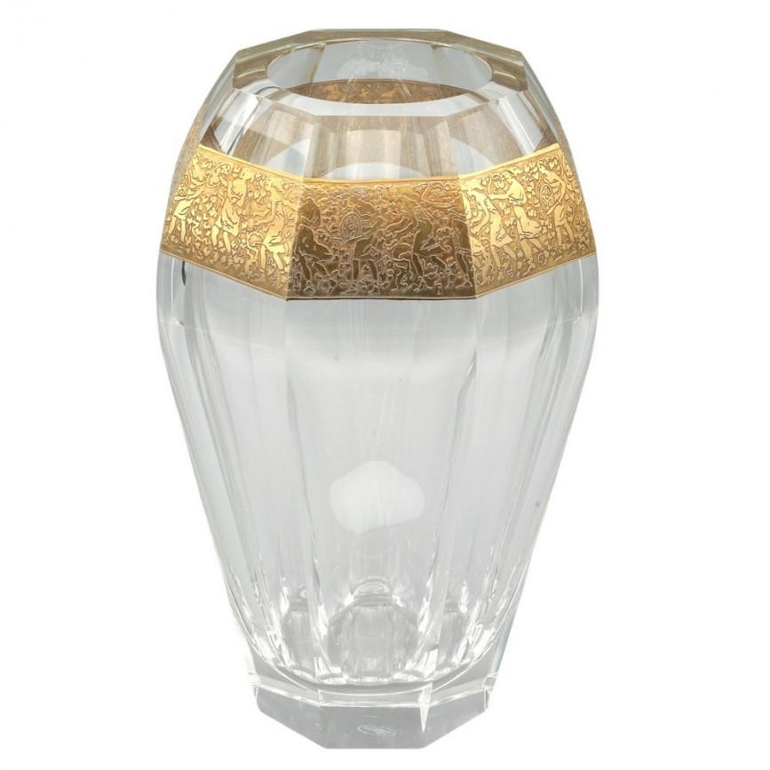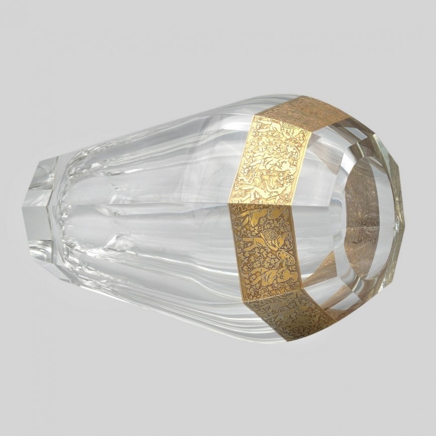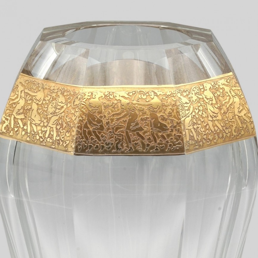 Vaza din cristal Moser - colectia Diva " Razboinice amazoane " a doua jumatate a secolului XX cristal turnat in tipar, taiat si slefuit manual, pictura cu aur coloidal