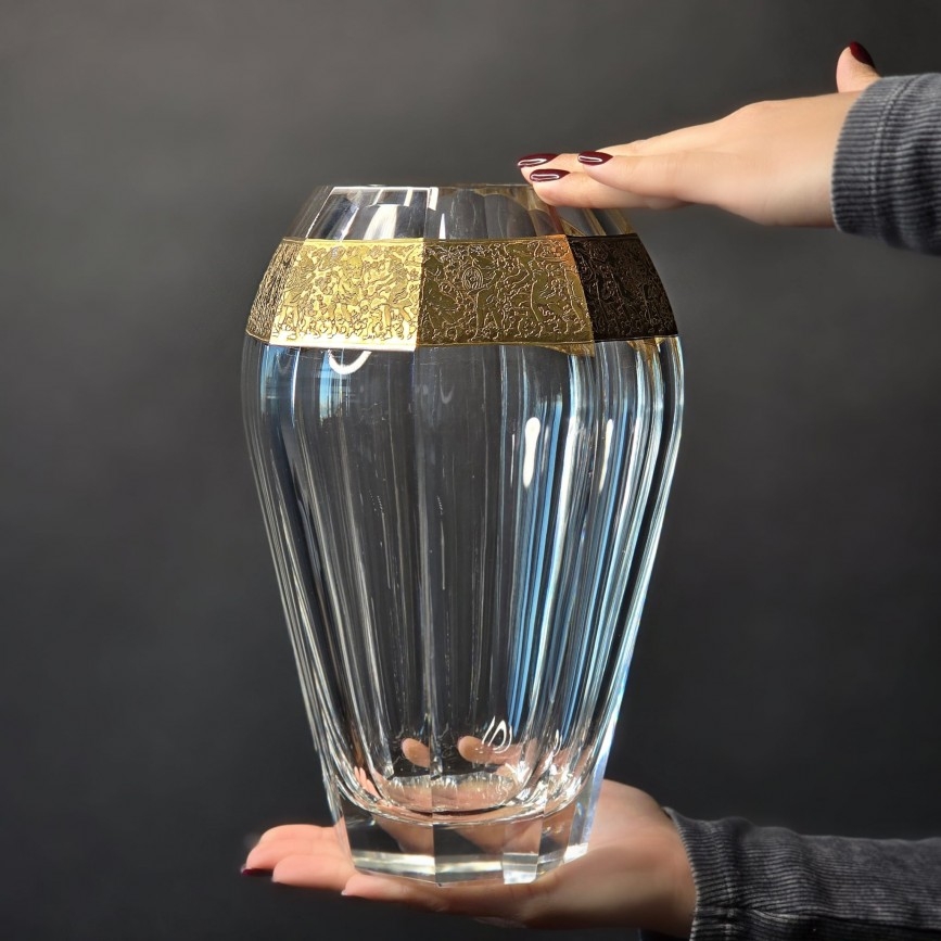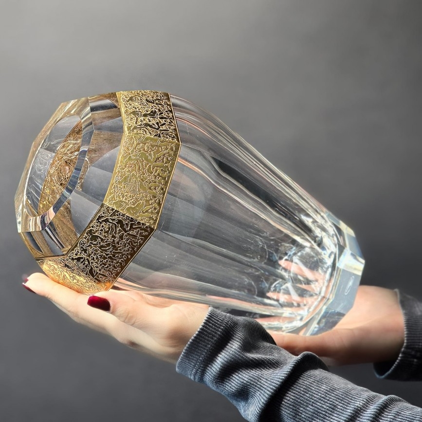 Vaza Moser din cristal in maniera Art Deco cu friza aurita