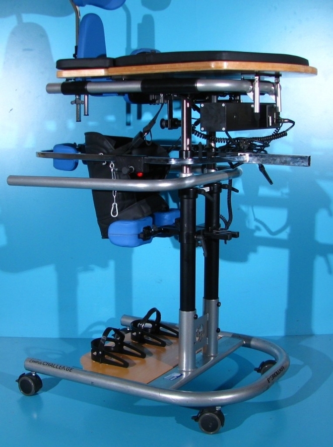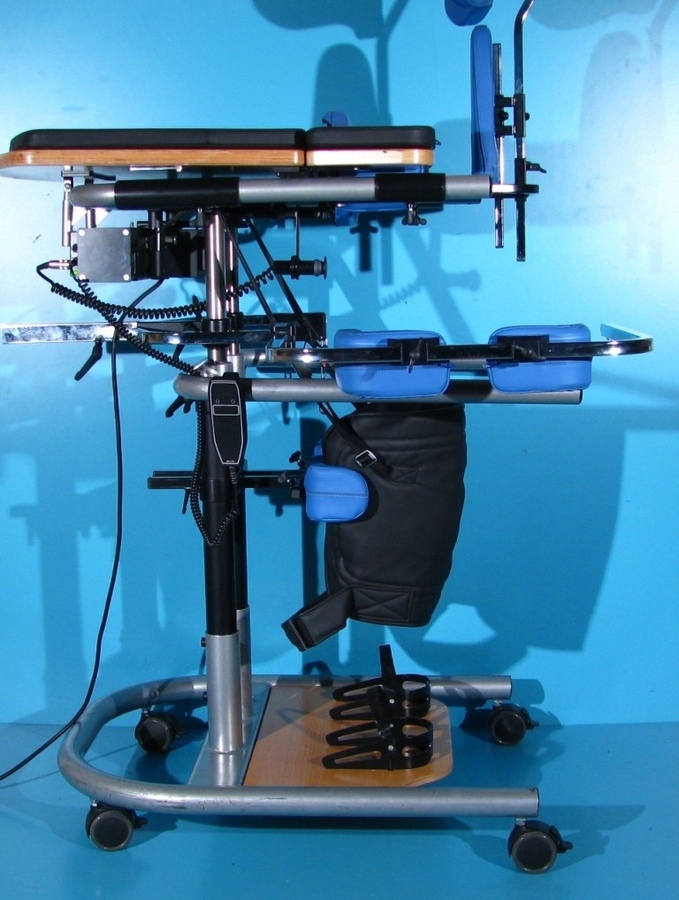 Cu ajutorul verticalizatorului, pacientul poate sta in picioare in siguranta, avand stabilitate si independenta.