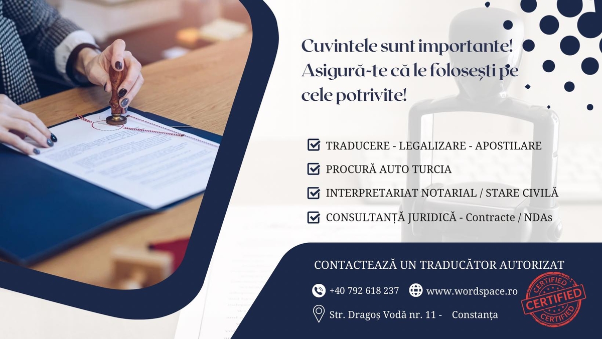 Wordspace Translations ofera servicii de traducere si interpretariat in judetul Constanta si nu numai, pentru documente si proiecte tehnice, juridice, medicale, economice, academice si personale, Procuri auto Turcia cu vizare la Consulat.