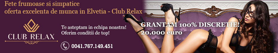 ELVETIA- Relax Club, plecari urgente angajam FETE 18+ cu aspect fizic placut ca dame de companie. Limba straina constitue un Avantaj. CASTIGURI...